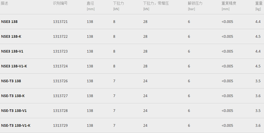 SCHUNK模塊NSE3系列部分型號(hào)