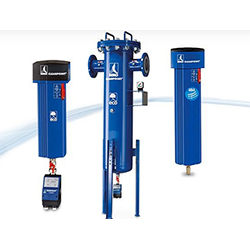 聚結(jié)過濾器結(jié)合了不同的過濾技術(shù)。在表面過濾中,較大的顆粒通過篩子效應(yīng)被捕獲在絨布中。在深度過濾(或沖擊分離)中,固體顆粒和氣溶膠深入過濾床,失去動能,減慢速度并粘附在纖維上。在濾床深處,氣溶膠因布朗分子運動與纖維發(fā)生碰撞,沿壓縮空氣流動方向沿纖維遷移,形成較大的液滴。它們聚集在排水層并通過重力到達冷凝水排水管。過濾器螺紋過濾器直接集成到壓縮空氣管路中。這可以在壓縮機之后直接完成,或者在從單獨的供應(yīng)管線分支時甚至在應(yīng)用之前立即完成。幾個螺紋過濾器通常相互組合,以便使用逐步過濾逐步達到所需的規(guī)格。螺紋過濾器可用于各種壓力水平。法蘭過濾器用于特別大的流量和相應(yīng)的大壓縮空氣管路。它們通過法蘭連接到壓縮空氣管路,可以安裝在墻上或放置在地板上。在這里,也有不同程度的過濾和壓力水平。