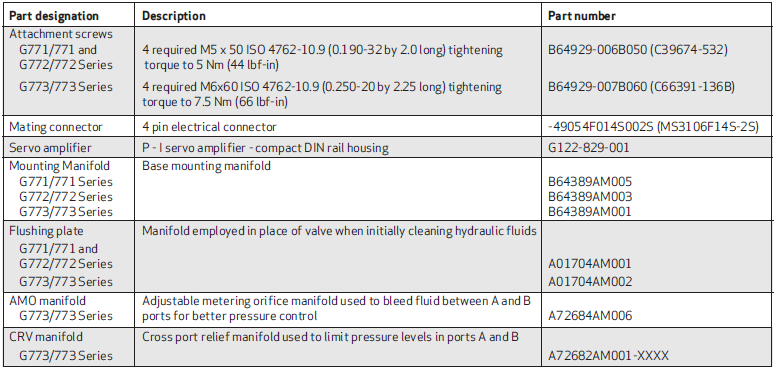 MOOG流量控制閥部分產(chǎn)品型號(hào):