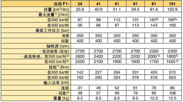 PARKER定量泵F1系列技術(shù)規(guī)格: