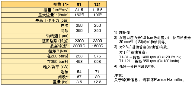 PARKER定量泵T1系列技術(shù)規(guī)格: